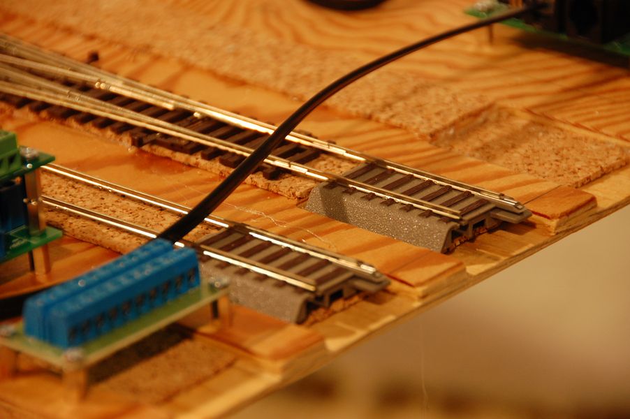 Detail - Konce kolejí z Geolinu - hodím desku v obýváku na zem, postavím okruh z jednotlivých kolejí Geolinu a už to pojede (teda snad :-) )