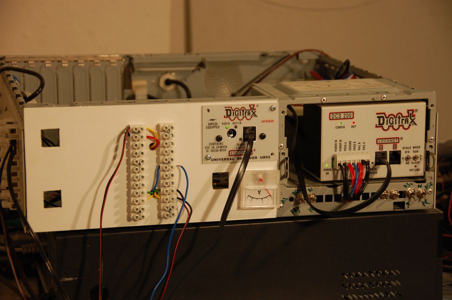 Hlavní řízení jízdy vlaků - starter set Digitrax Super Chief Duplex. Vše zabudováno do vykuchaného počítače.